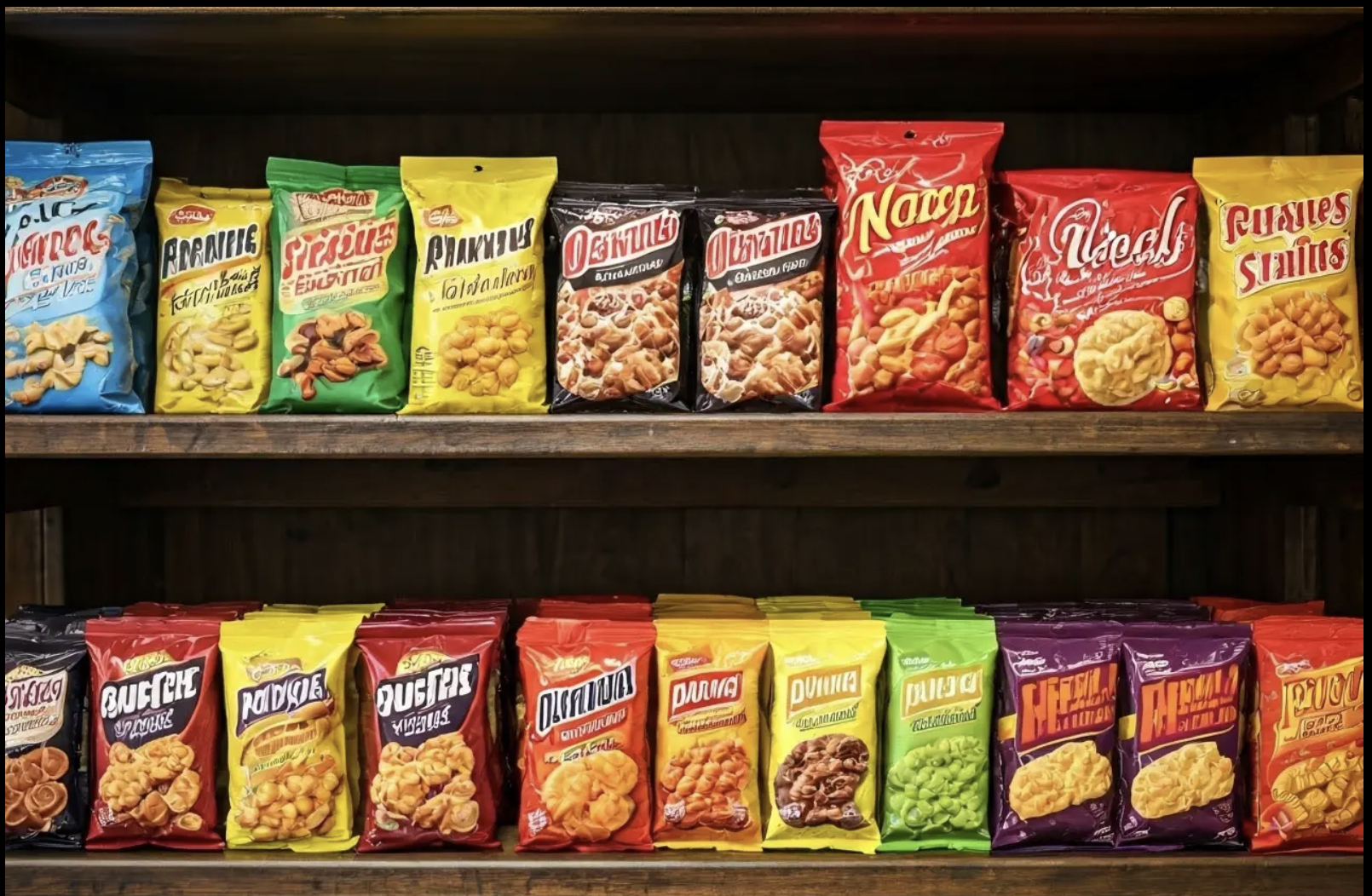 Biscuits, confectionery, nuts, dried fruits, and other packaged food products suitable for wholesale distribution.